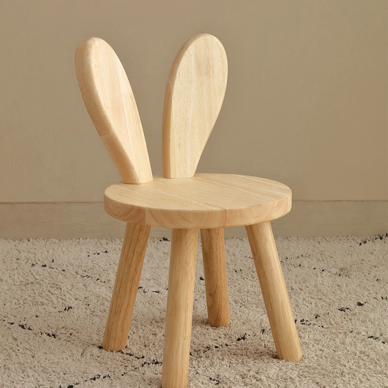 1pc Creative Small Board Stool, Solid Wood Rabbit Ears Stool Household Backrest Small Chair