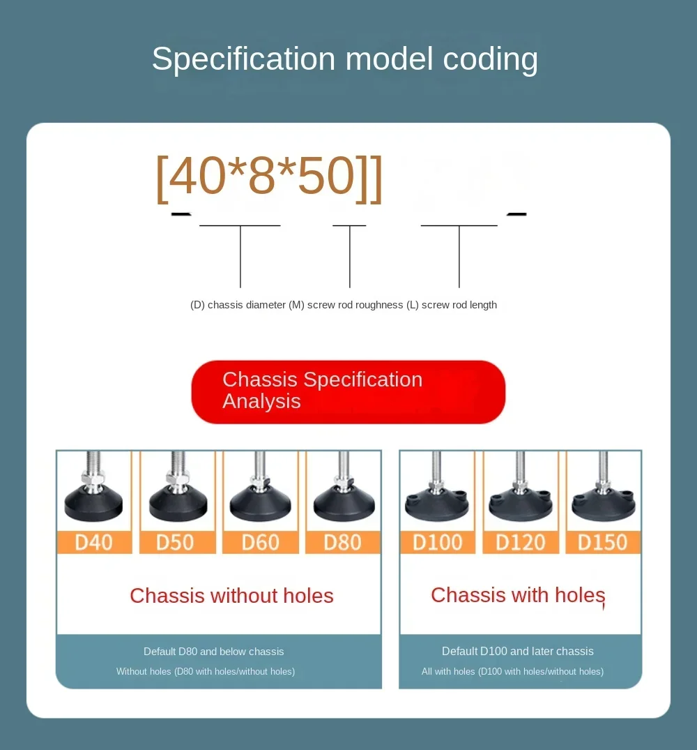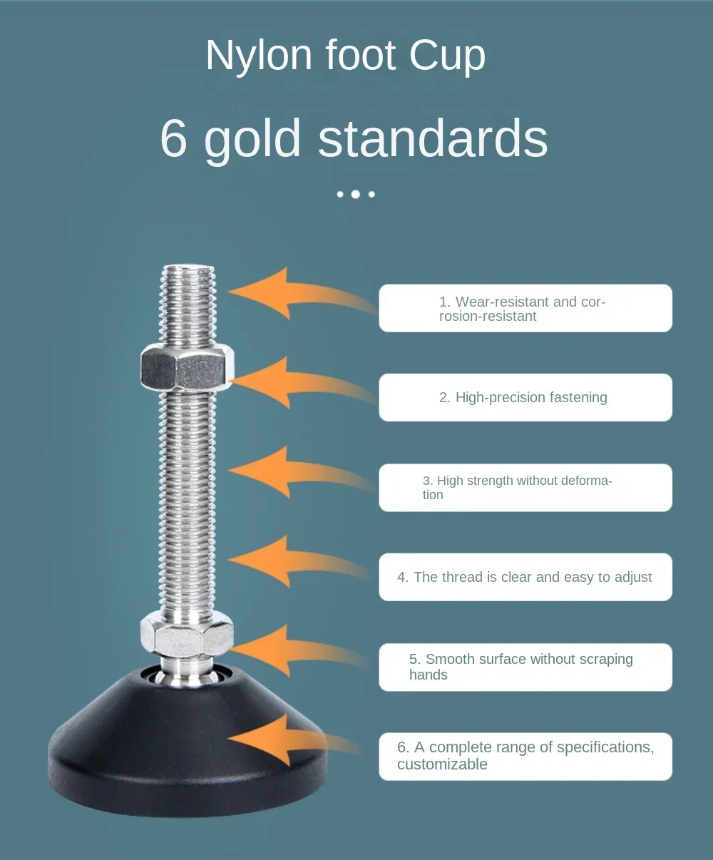 4Pcs Nylon Universal Adjusting Foot With Threaded Universal M8 M10 M12 Rubber seat Anti-slip Damping Furniture Pad Foot