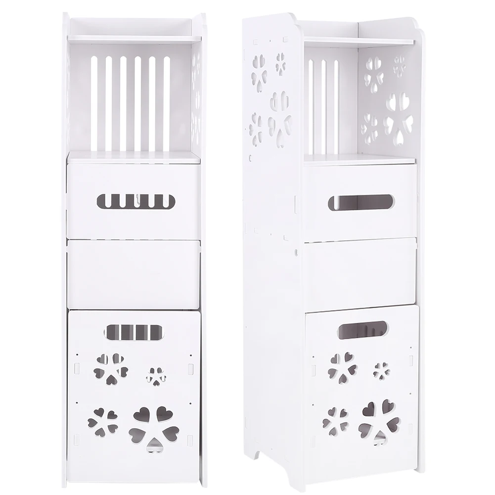 Bathroom Toilet Furniture Cabinet White Wood Cupboard Shelf Tissue Storage Rack Bathroom Storage Cabinet 80x15.5x15CM