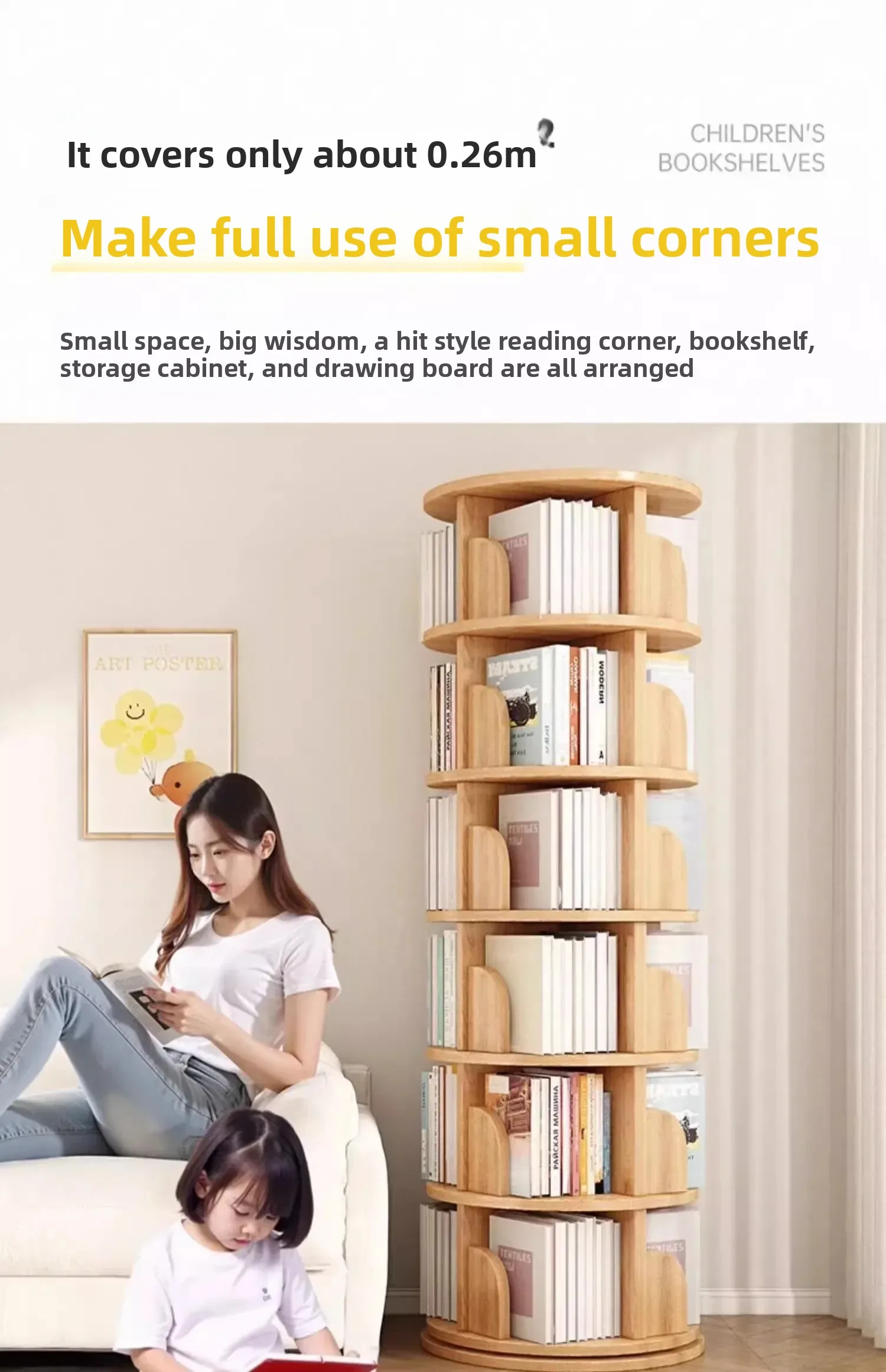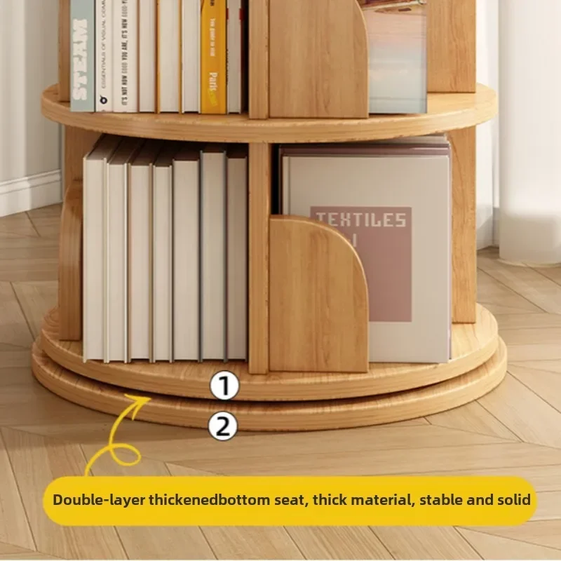 Solid wood rotating bookshelf 360 degree floor-standing bookcase storage rack movable corner children’s small narrow cabinet