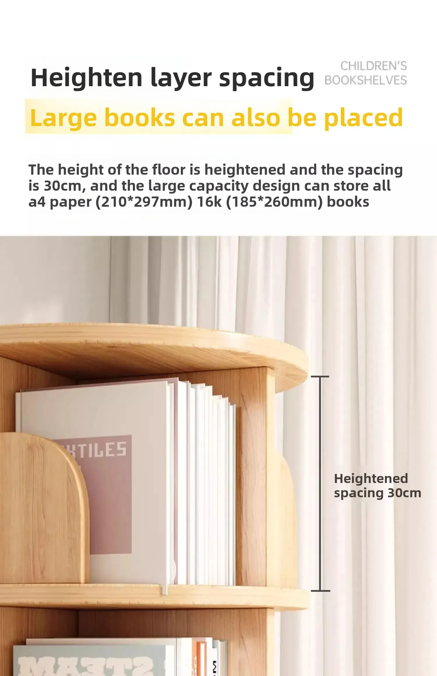 Rotating Bookshelf 360-Degree Home Floor-To-Ceiling Simple Children's Bookcase Living Room Large-Capacity Storage Rack