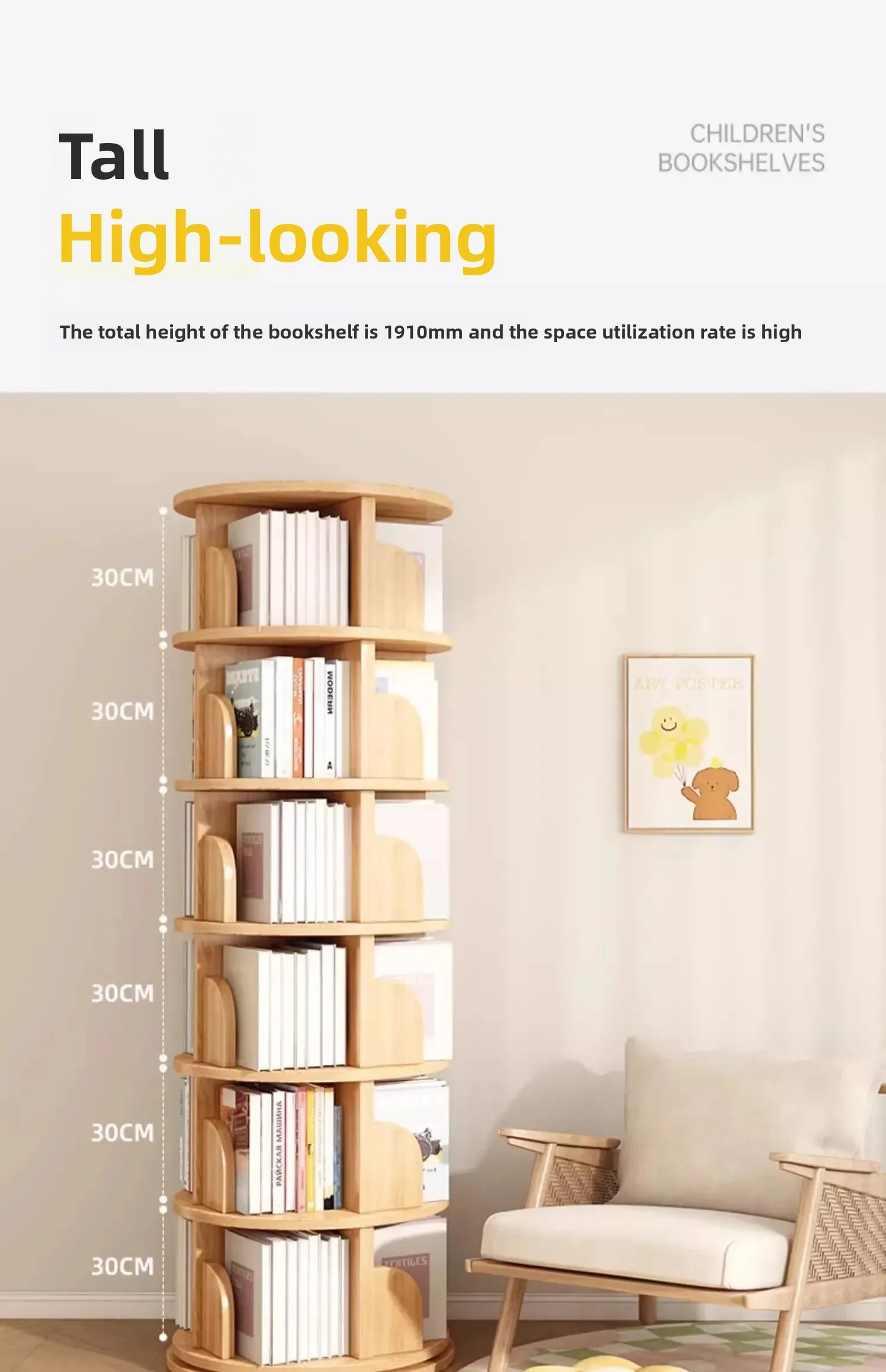 Rotating Bookshelf 360-Degree Home Floor-To-Ceiling Simple Children’s Bookcase Living Room Large-Capacity Storage Rack