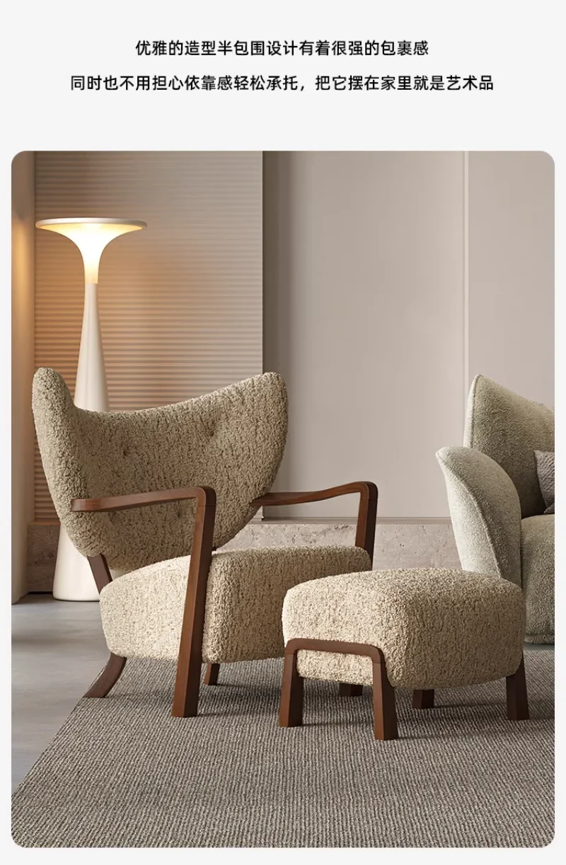 Danish Designer Style, Internet Celebrity Chair, Lambskin Material, Source Factory,Nordic Style Woolf Leisure