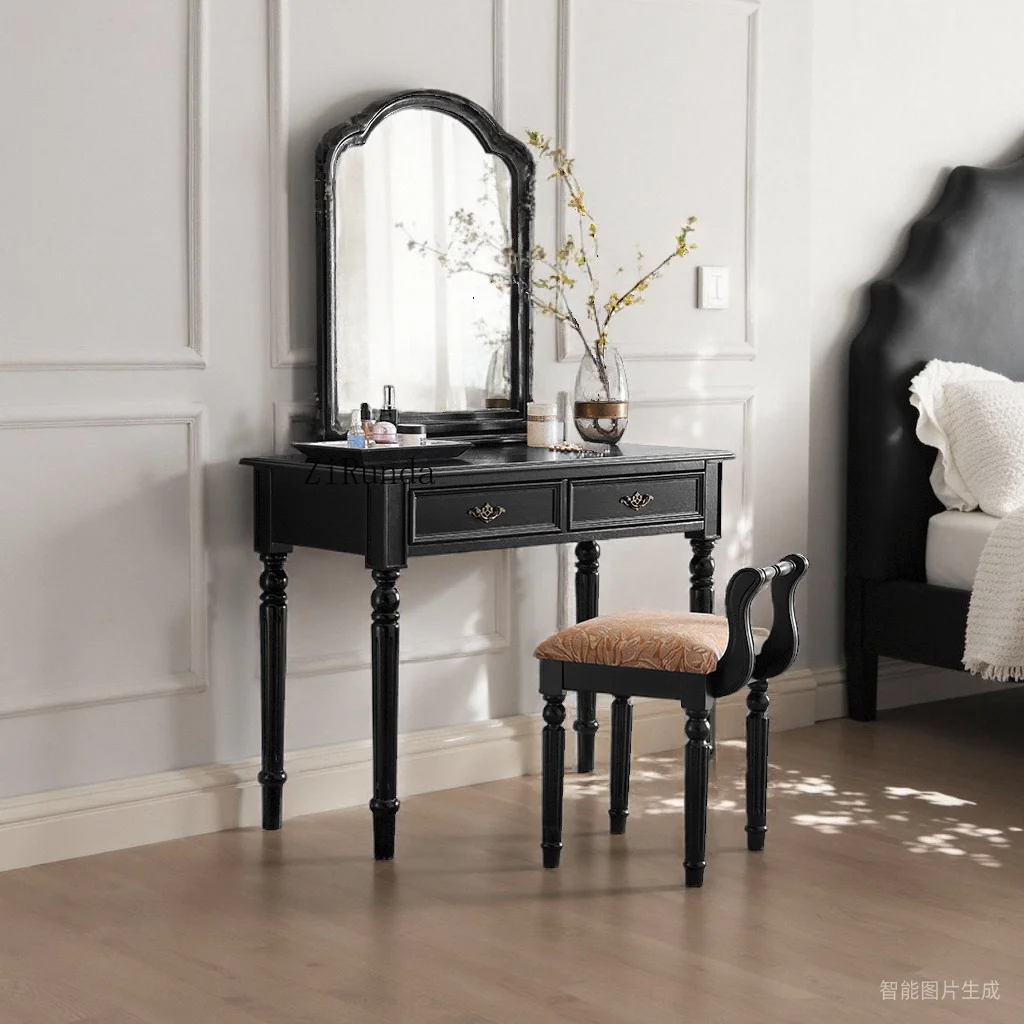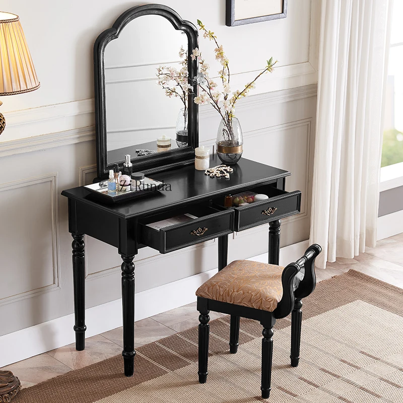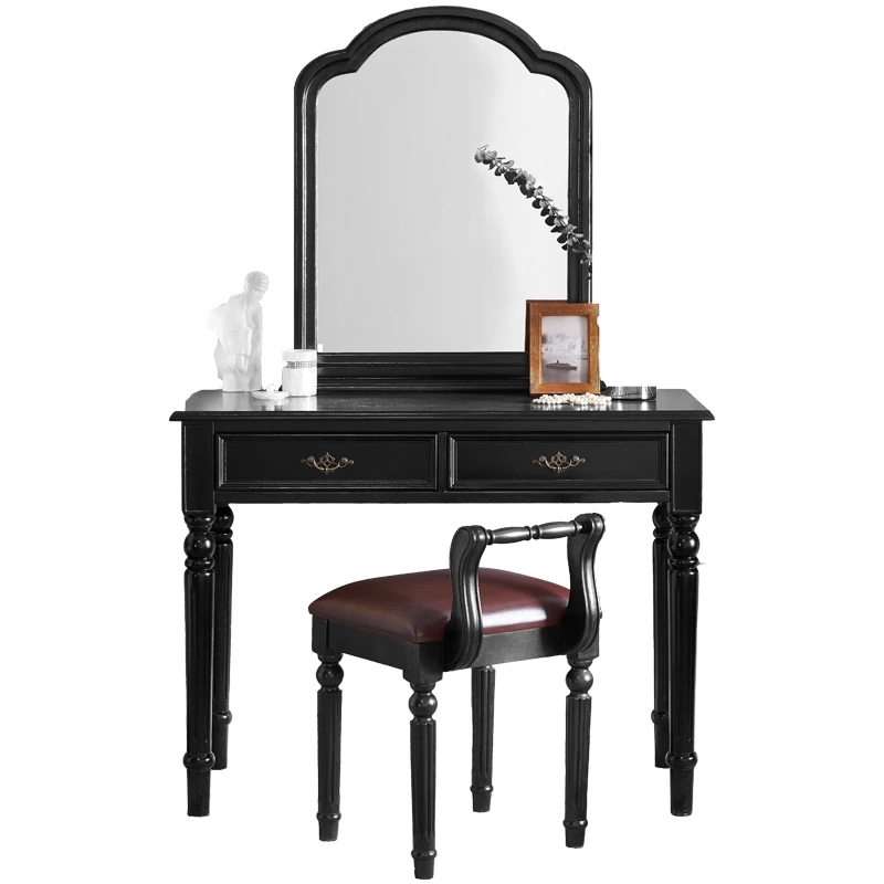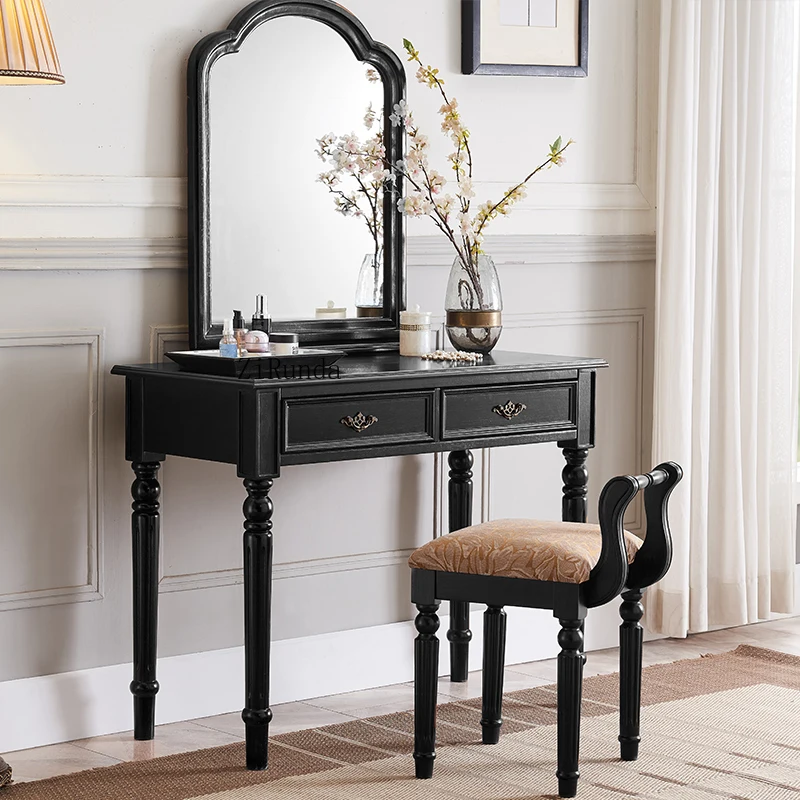 HomeBedroom Furniture French retro black solid wood dresser, simple retro makeup table for bedroom storage