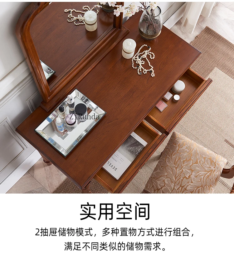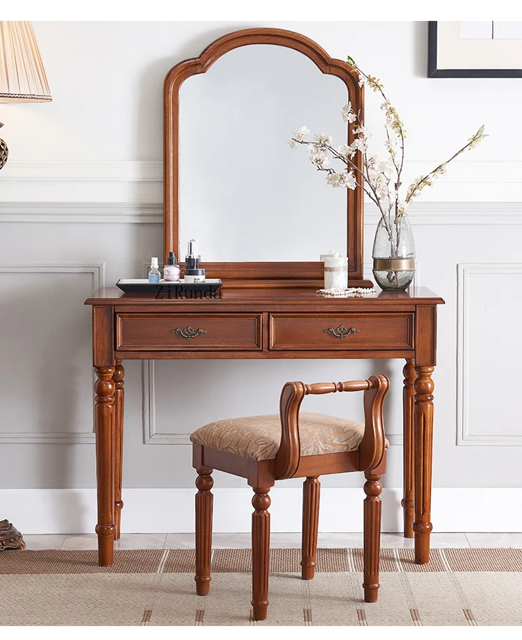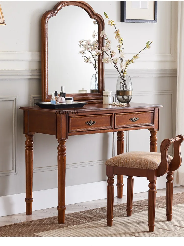 American Solid Wood Dresser Modern Simple Bedroom Vanity Table with Mirror Storage Cabinet Home Furniture Tocador Mueble FYDT