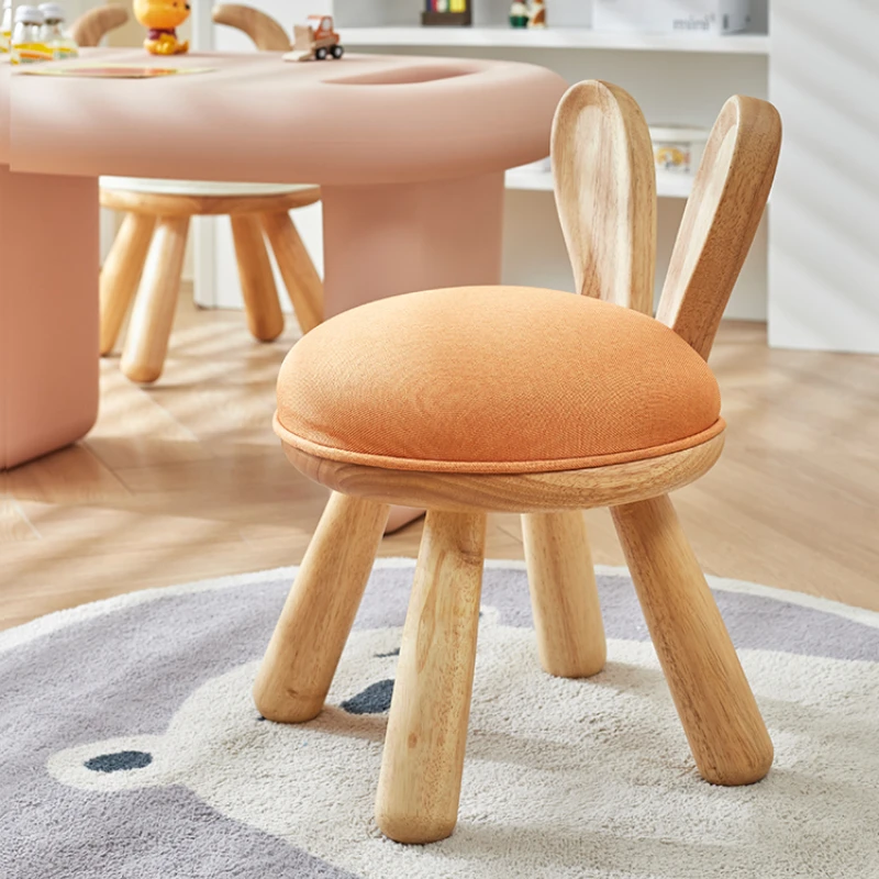 White Rabbit Children's Sofa Stool Solid Wood Baby Reading Corner Chair Animal Sitting Stool Small Sofa Chair