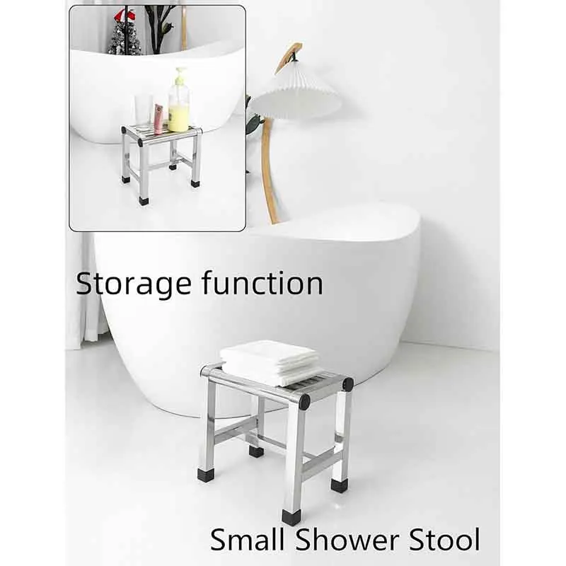 HomeBathroom Furniture Shower Foot Stool Stainless Steel Seat Rest Stool Metal Waterproof Shaving Legs Shower Stool For Home Bathroom Living Room