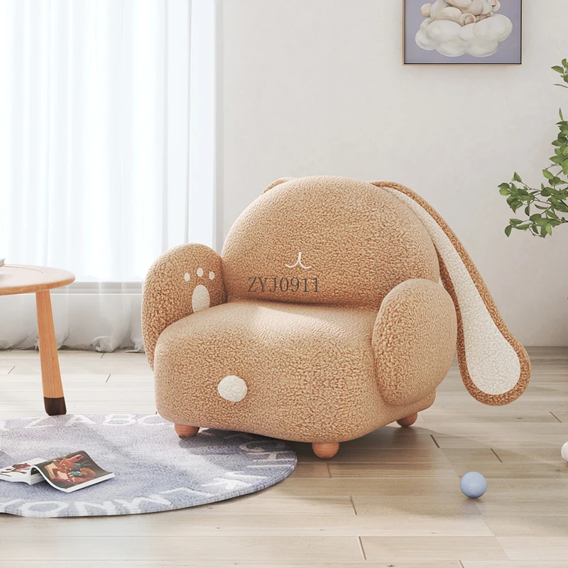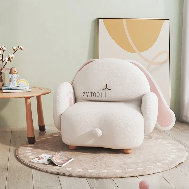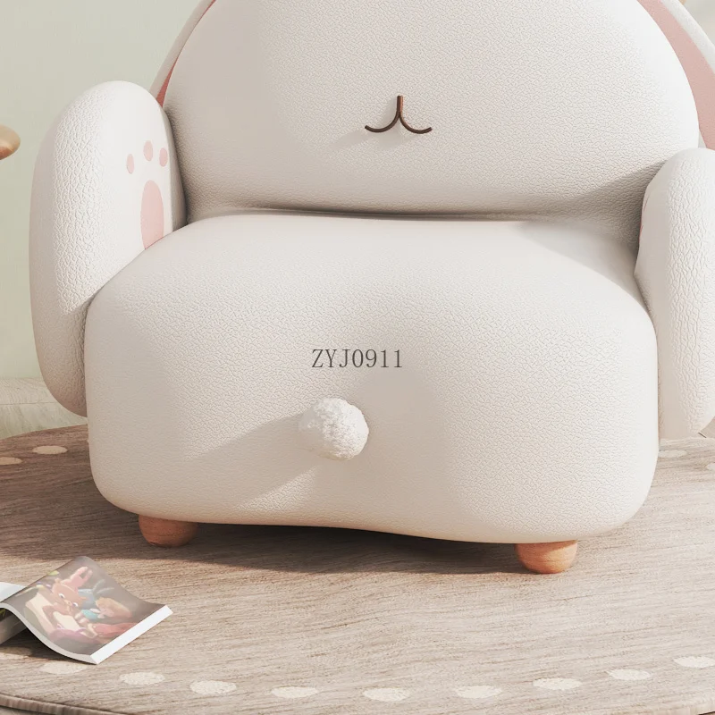 White Rabbit Children’s Sofa Stool Solid Wood Baby Reading Corner Chair Animal Sitting Stool Small Sofa Chair