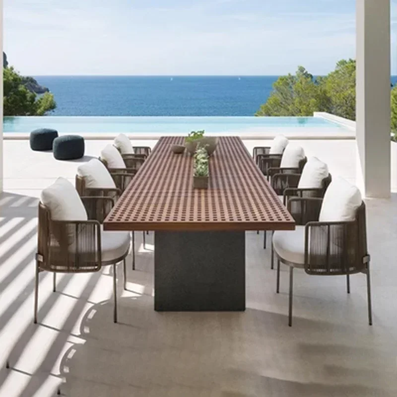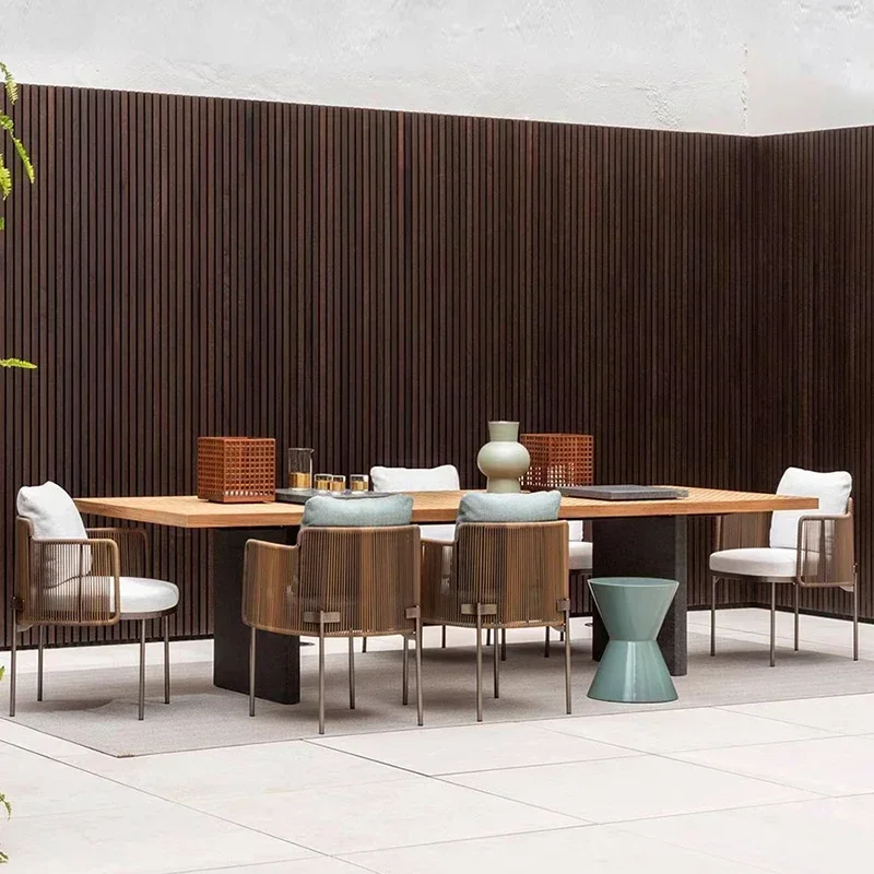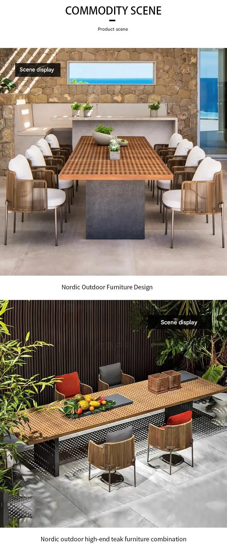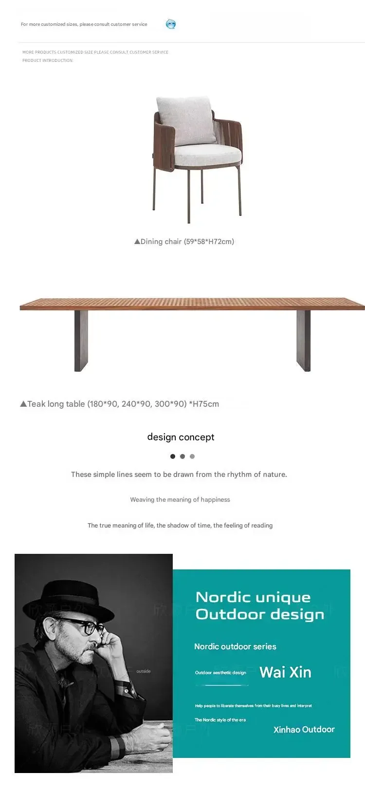 Nordic Garden Furniture Sets Outdoor Dining Table Chair Patio Villa Waterproof Chair Designer Hotel Leisure Solid Wood Armchair